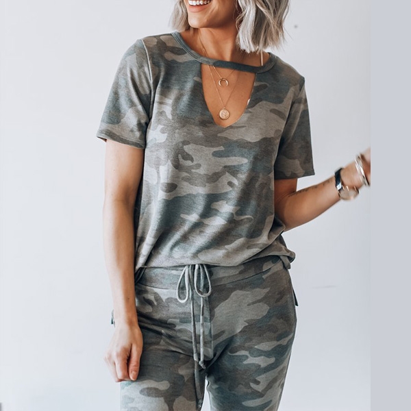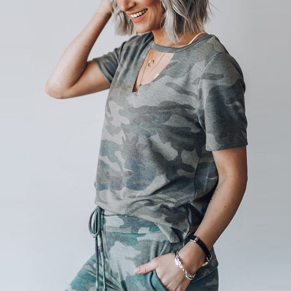 The camouflage printed details makes it look so stylish and eye-catching. Finished with short sleeve