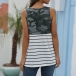 Fashion Camouflage Printed Spliced Round Neck Striped Tank Top
