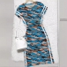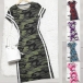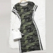 Fashion Camouflage Side Stripe Printed Crew Neck Short Sleeve Bodycon Dress