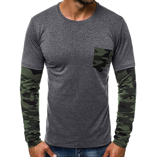 t-shirt in your wardrobe. The camouflage spliced details enrich the design style as well as boost its charm.