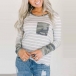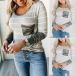 Fashion Camouflage Spliced Long Sleeve Round Neck Striped T-shirt