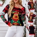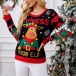 Fashion Cartoon Elk Pattern Crew Neck Long Sleeve Christmas Sweater