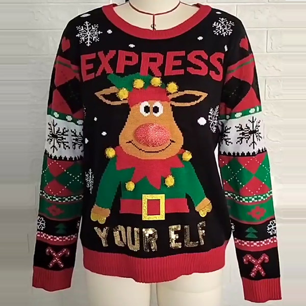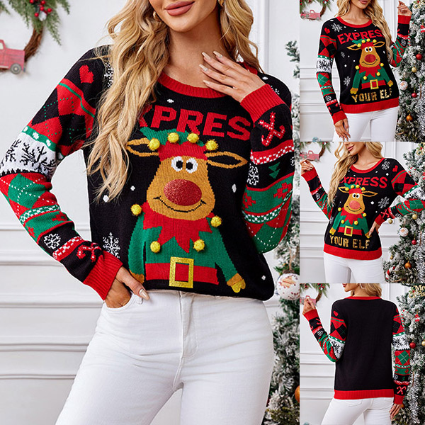 Look at this sweater! The crew neck design offers a classic and versatile look, while the long sleeves provide warmth and comfort. The cartoon elk pattern adds a playful and whimsical touch to the sweater, making it a perfect choice for Christmas gatherings and parties. Crafted from cozy fabric, this sweater is designed to keep you cozy and stylish during the holiday season.