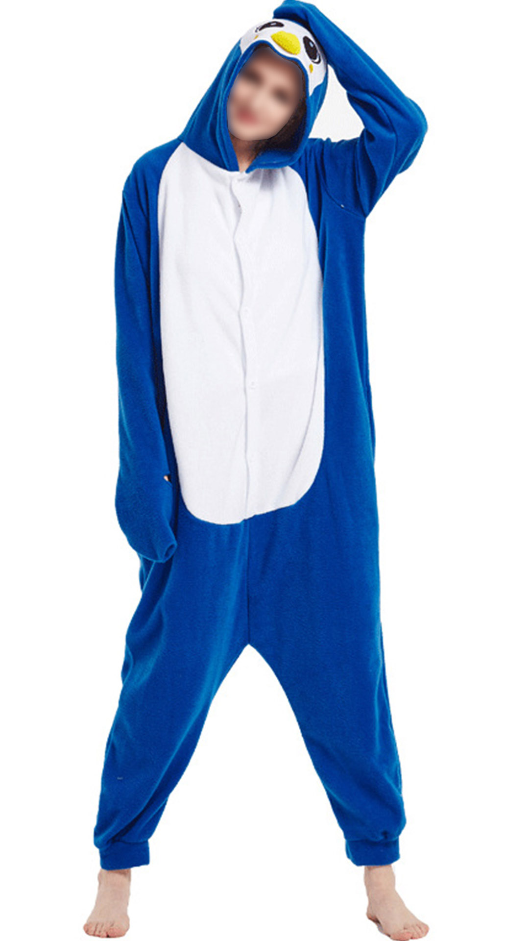 Fashion Cartoon Penguin Hooded Pajamas Jumpsuit