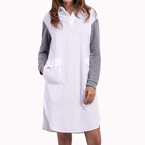 with long sleeve and side slit patterns, casual and stylish. The front pocket design is convenient for