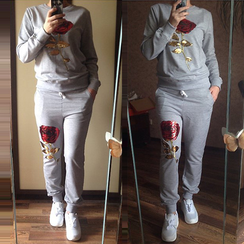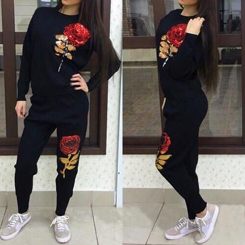 I think that your weekend call for such casual sports suit. It is styled with flower printed design and long