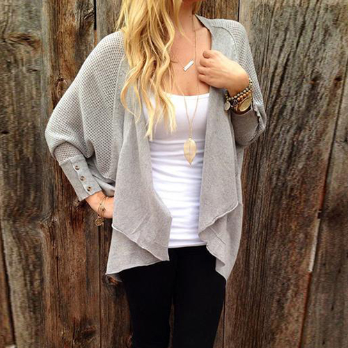 This unique cardigan is outfitted with solid color and bat sleeve design, special and stylish. Its