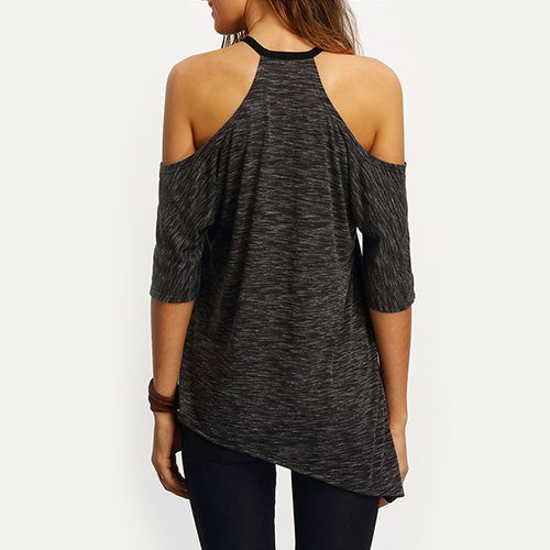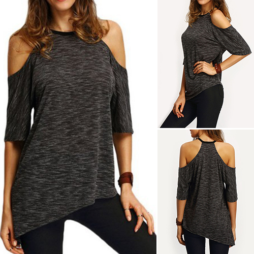 half sleeve patterns, with irregular design, casual and stylish. The cold shoulder and halter style make it a little sexy