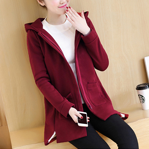 color and front zipper hoodie design, simple but stylish. It is decorated with long sleeve and front pocket
