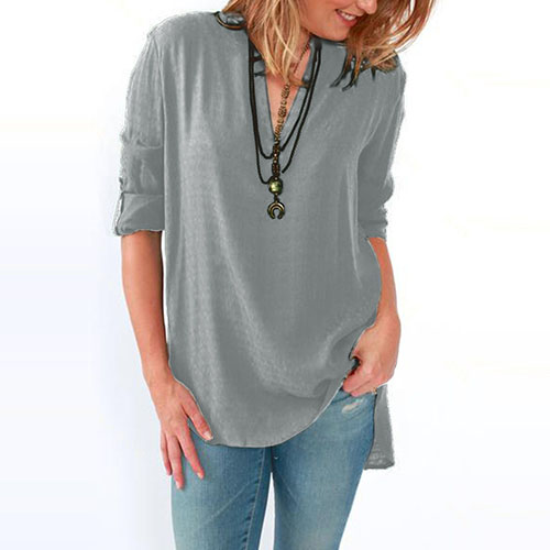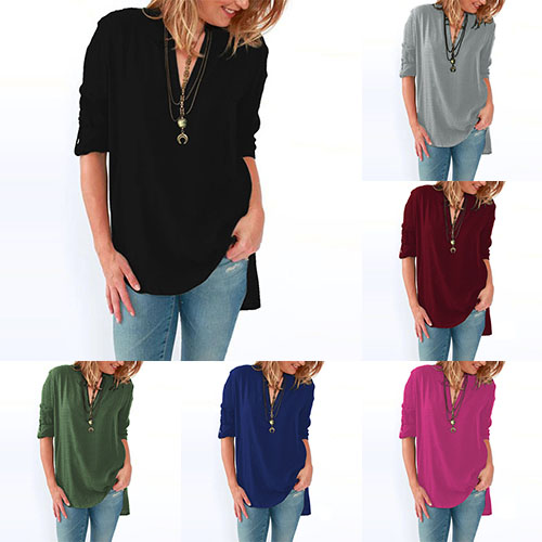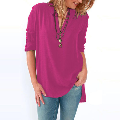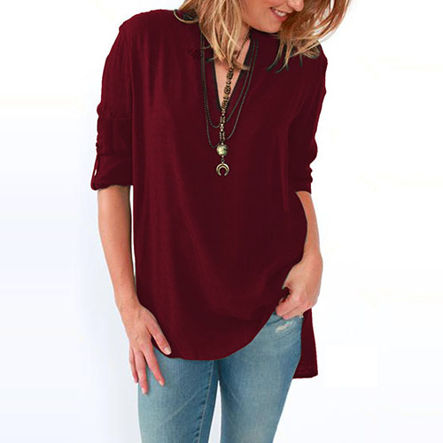 You should have such an casual and elegant tops. It is decorated with solid color and long sleeve v-neck patterns, casual