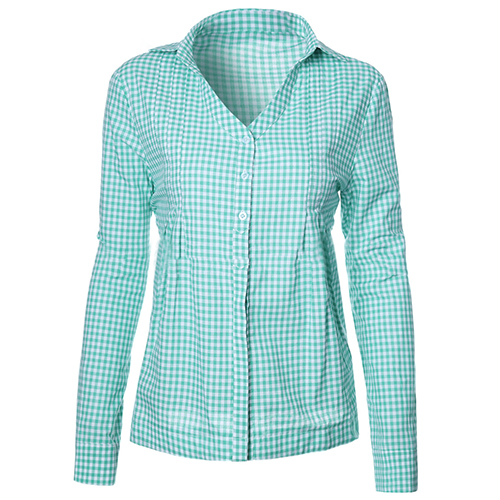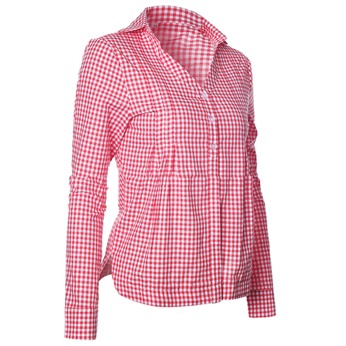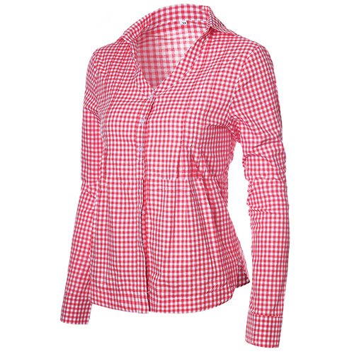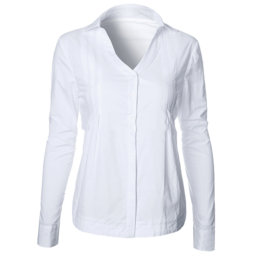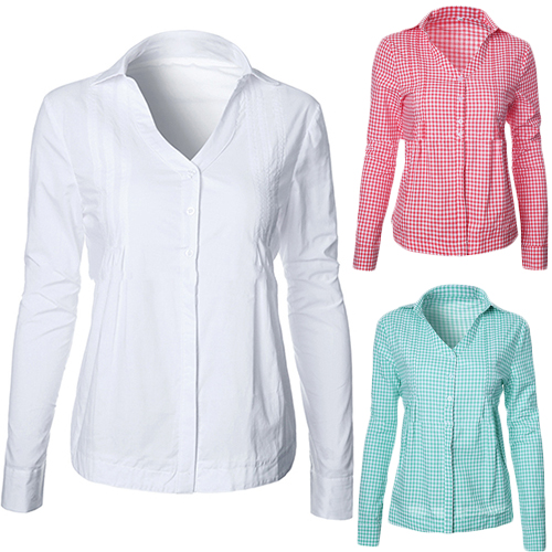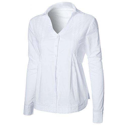 The blouse is styled with V-neck lapel patterns and lattice long sleeve design, which can elevate your fashion