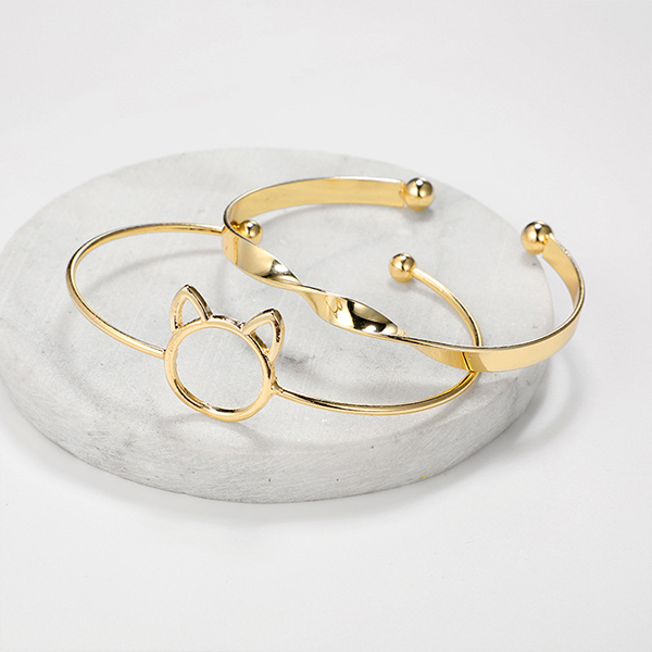 Fashion Cat Rhinestone Four-piece Bracelet Set