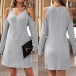 This gray dress features an open-shoulder design with chain shoulder straps, long sleeves, and a trendy and stylish look. Wanna have one?