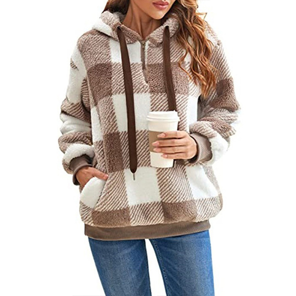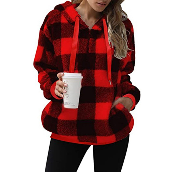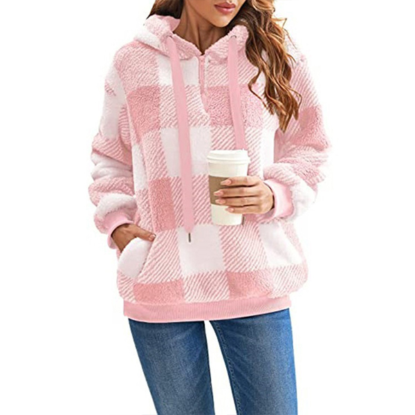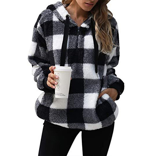Fashion Checkered Drawstring Hooded Sweatshirt