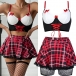 Fashion Checkered Lace-up Contrast Color Four-piece Lingerie Set