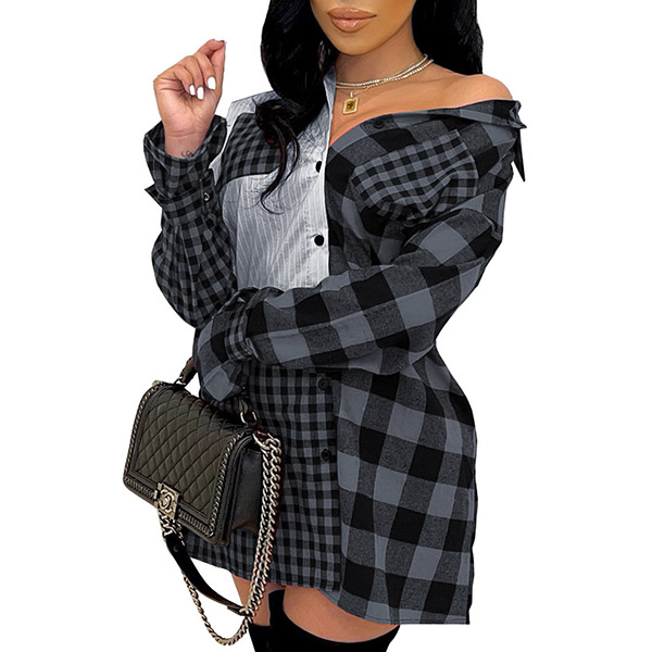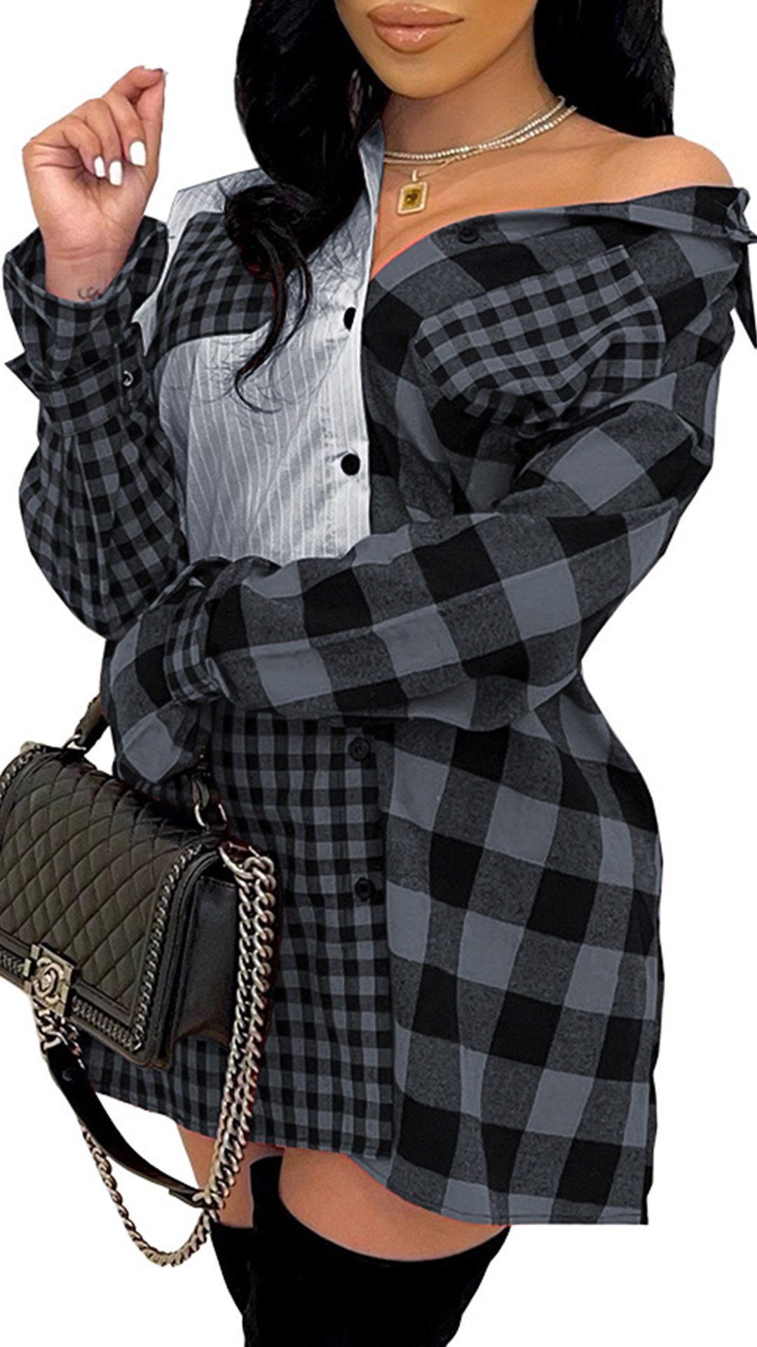 With a plaid pattern in contrast color, this shirt dress is perfect for daily wear!