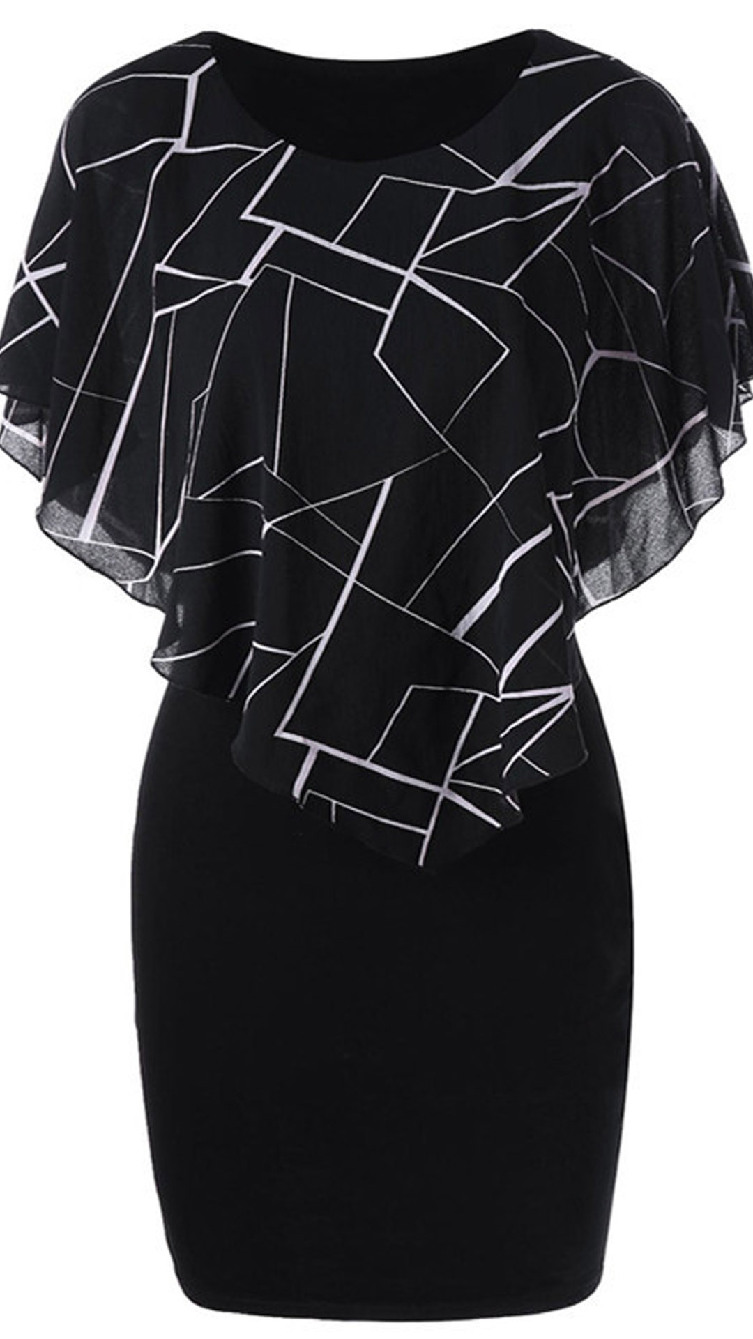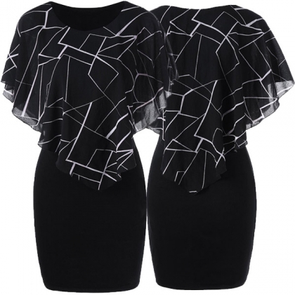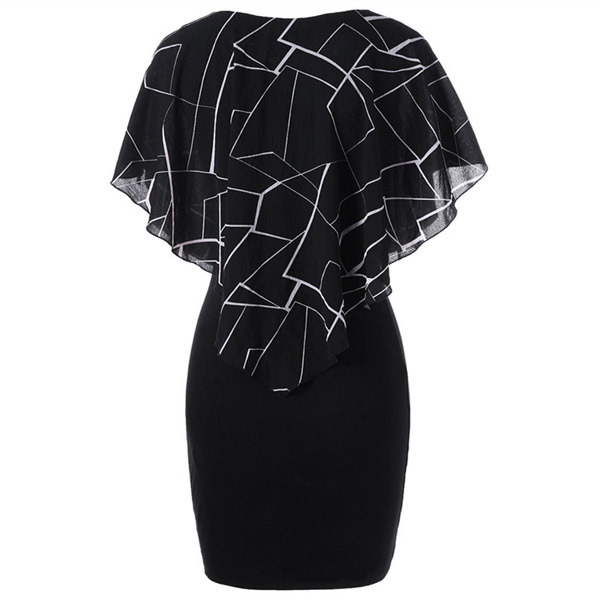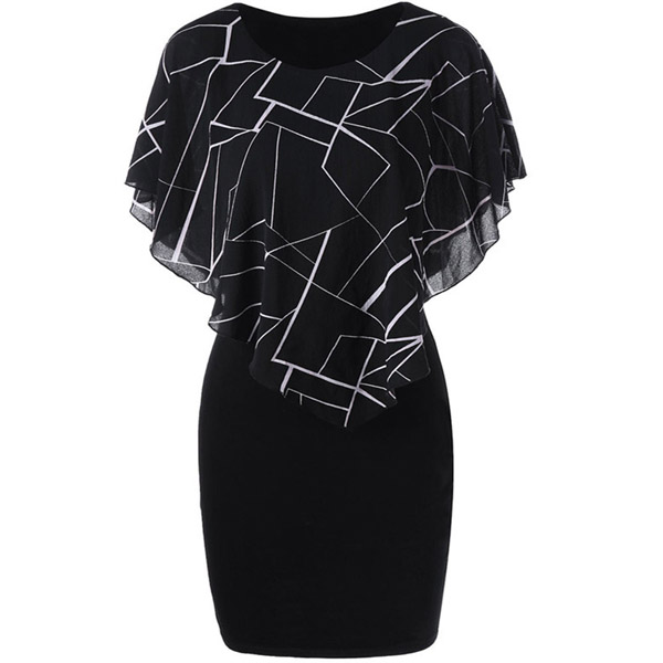 Looking good is never hard for you if you have this dress in your team. The chiffon spliced with chic geometry print details makes this piece full of style and charm,while the fit silhouette design will showcase your slender figure. This is a dress which can be fit for different occasions.