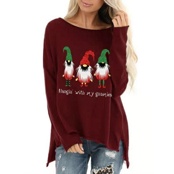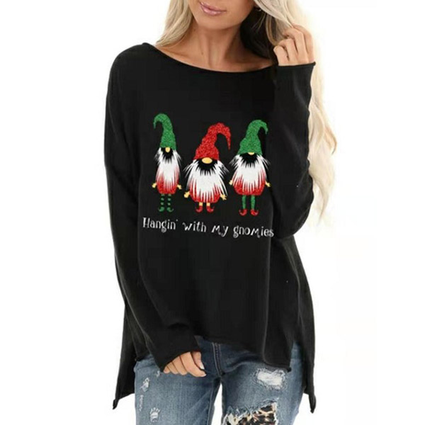 Fashion Christmas Printed Long Sleeve Slit Hem Sweatshirt