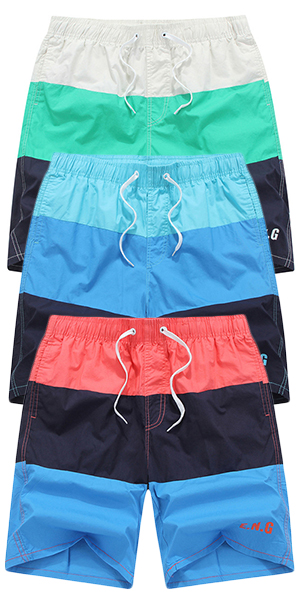 features three color blocks design and elasticized drawstring waist.