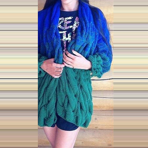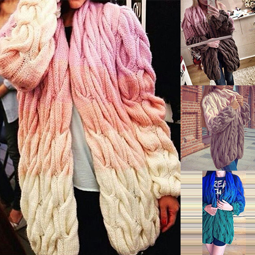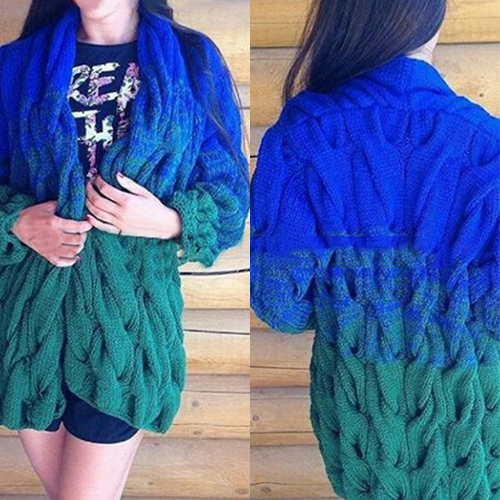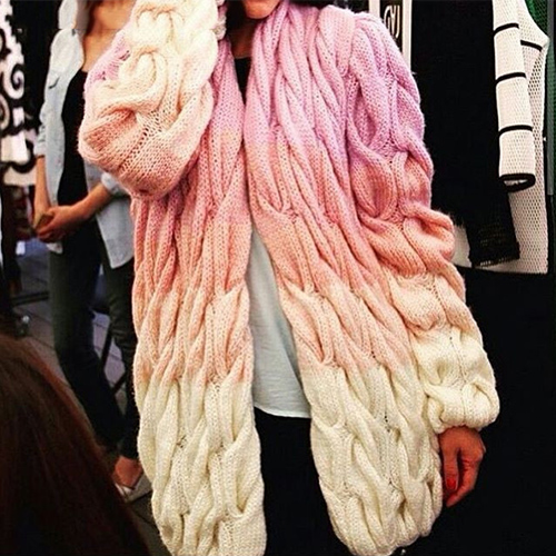 Fashion Color Gradient Long Sleeve Knit Cardigan