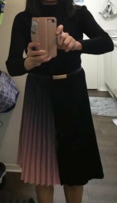 This delicate knit dress is worth to be your wardrobe staple when the days get cold. The pleated hem with color gradient design makes this piece look so distinctive and attractive. Finished with long sleeve,mock neck and a fit silhouette,this dress knows how to showcase your figure. Your elegant image and charming sense can have a full display in this dress.