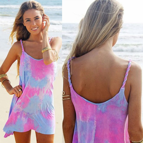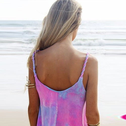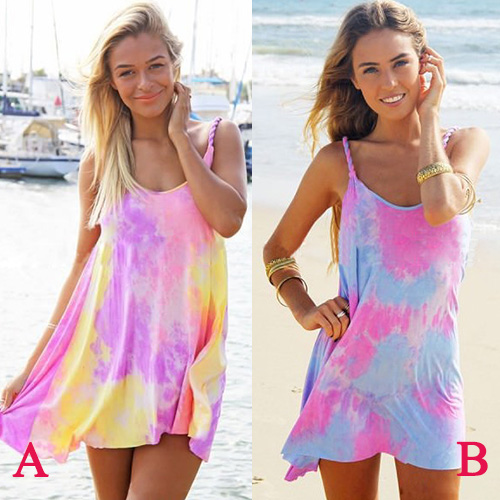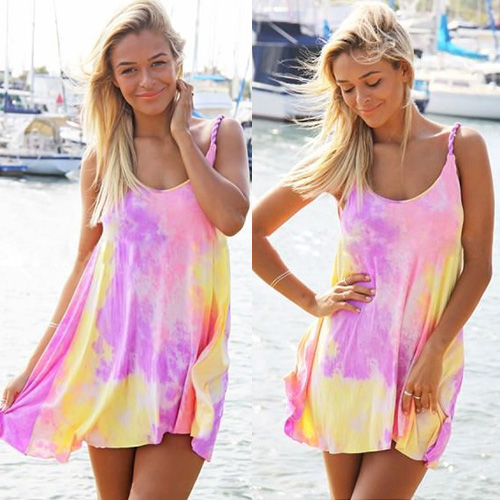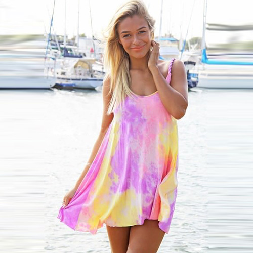 Fashion Color Gradient Tie-dye Printed Beach Dress