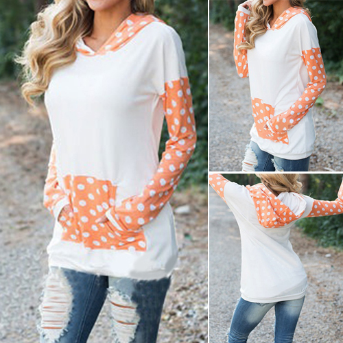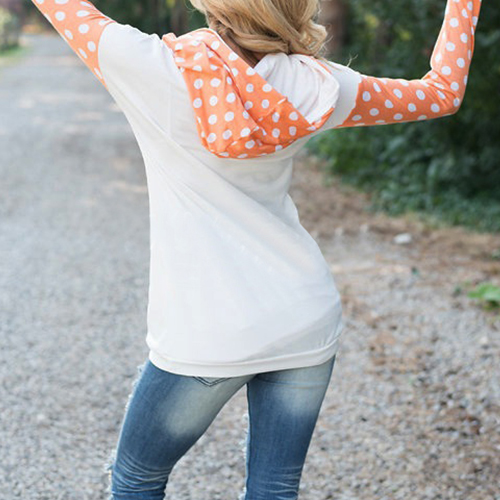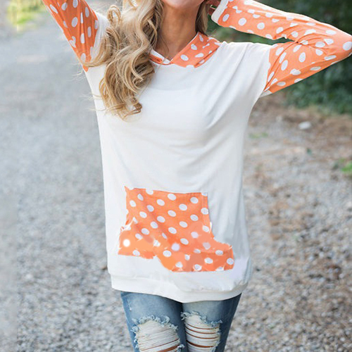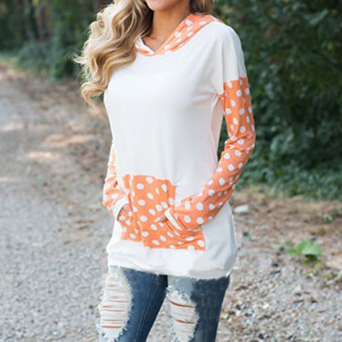The sweatshirt features active and fashion style. It is decorated with color spliced and dots printed