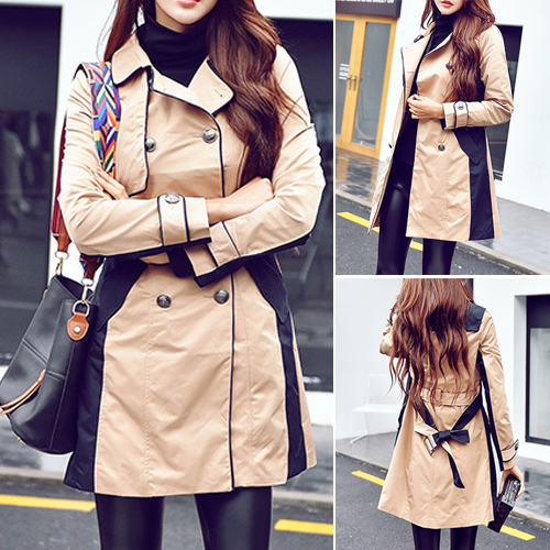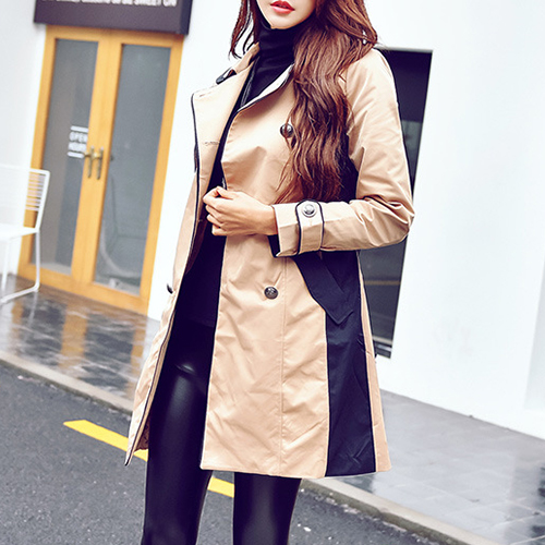 help of this ever-reliable coat. The coat is styled with color spliced design and double-breasted lapel patterns,