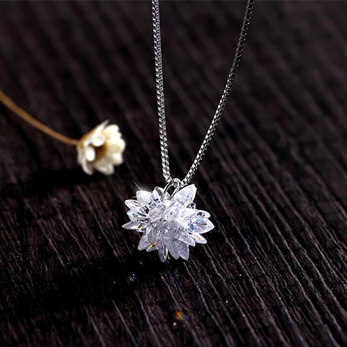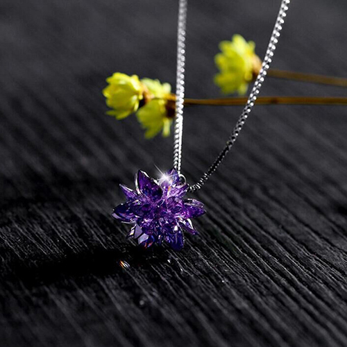 Fashion Colored Rhinestone Flower Pendant Necklace