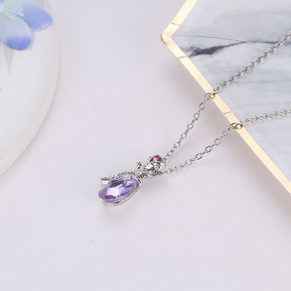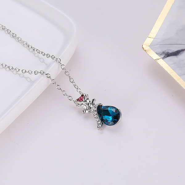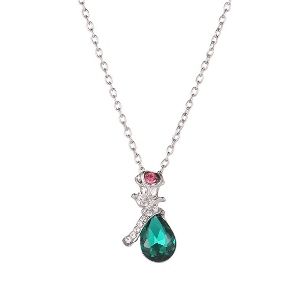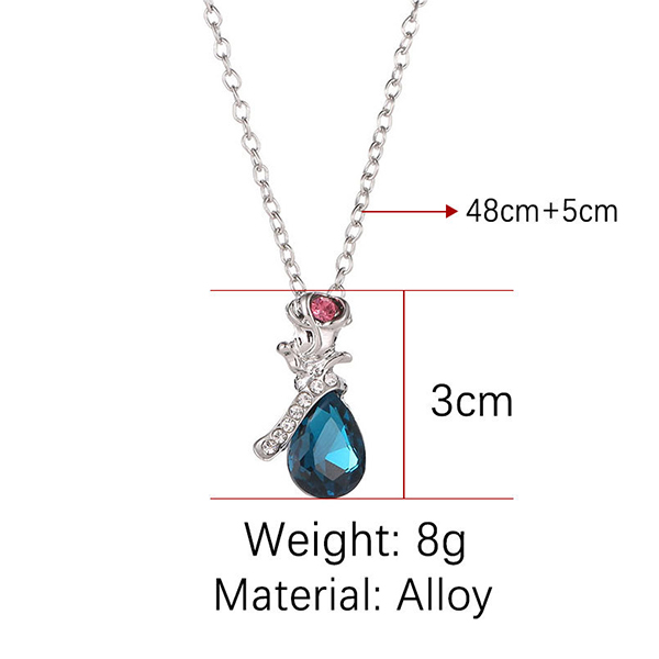 It is a good way to embellish your neck with this necklace. The water-drop pendant which is decorated with colored rhinestone design makes it look so shinning. Add it to your overall dress up and your charm can have a boost.