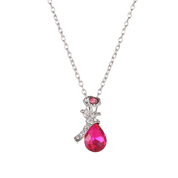 Fashion Colored Rhinestone Inlaid Water-drop Pendant Necklace