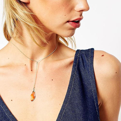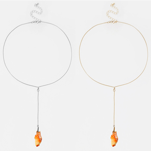 colored stone pendant,simple but chic. This necklace is an ideal way to embellish your charming neck.