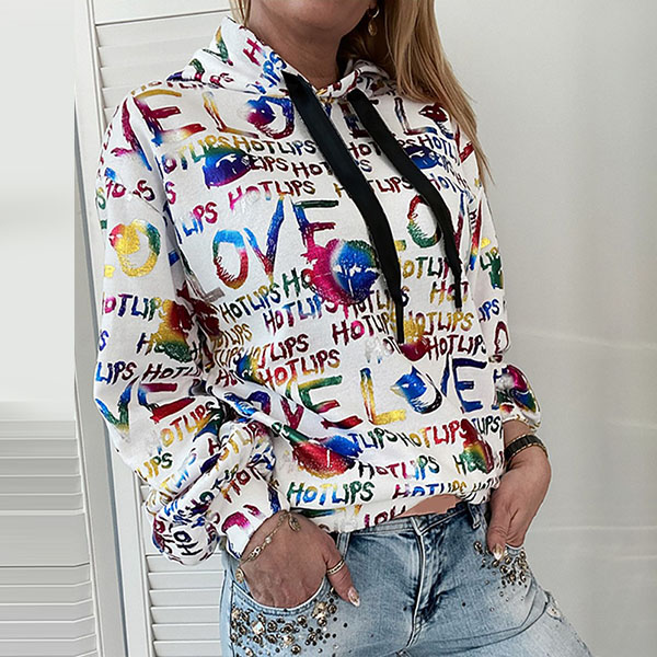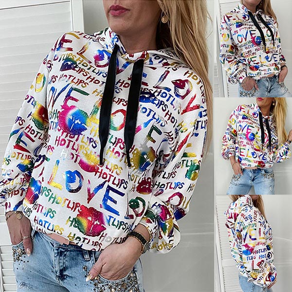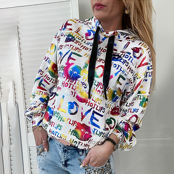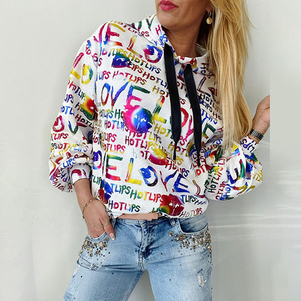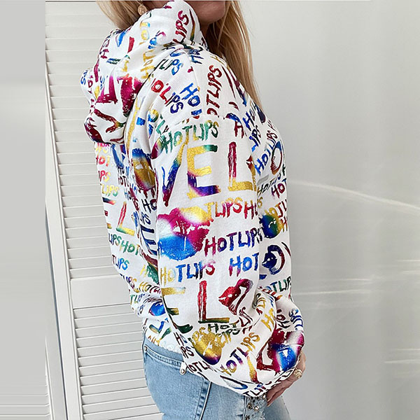 Fashion Colorful Letters Printed Long Sleeve Hooded Sweatshirt