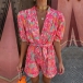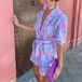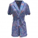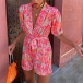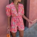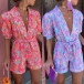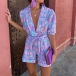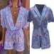Fashion Colorful Printed Lapel V-neck Short Sleeve Self-tie Romper