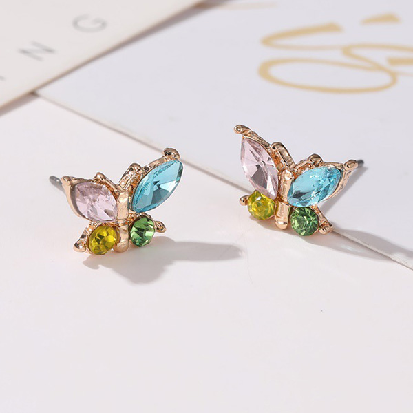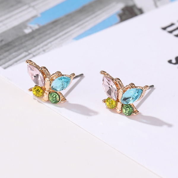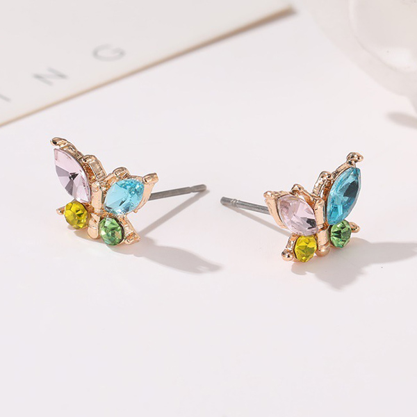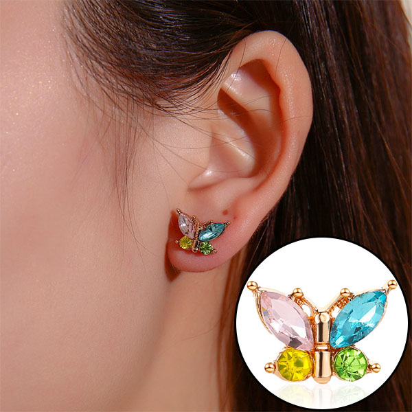 Fashion Colorful Rhinestone Inlaid Butterfly Shaped Stud Earrings