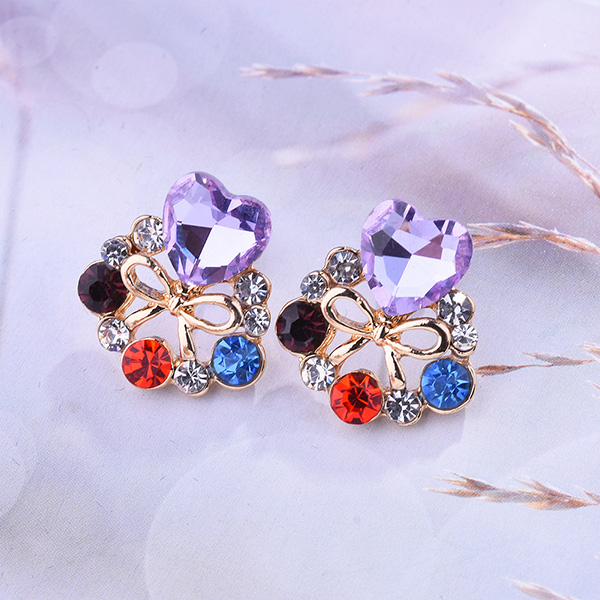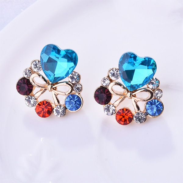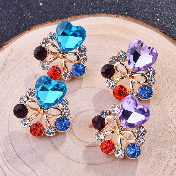 Finish a more shinning look with the help of these stud earrings. Designed with heart and bow-knot shape,inlaid with colorful rhinestone details,this pair of stud earrings can easily enhance your entire charm and boost your charm.