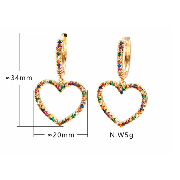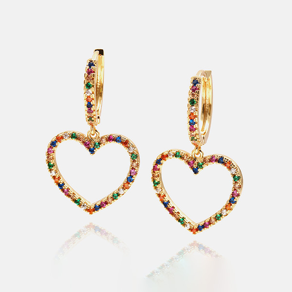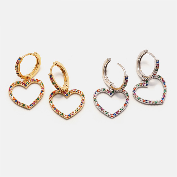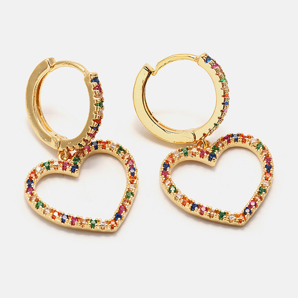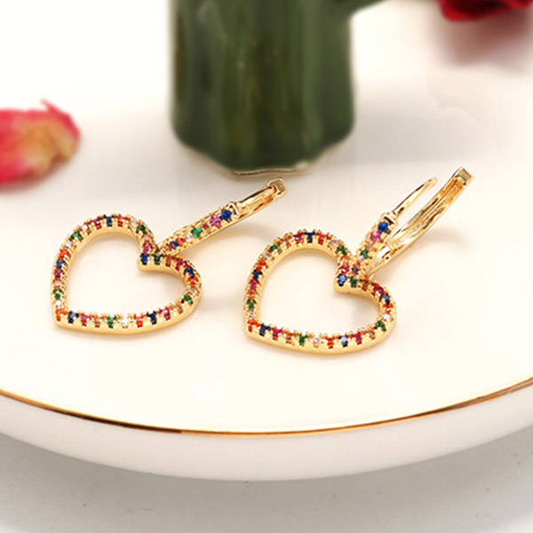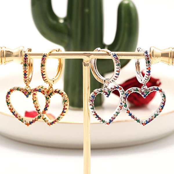 Finish a more shinning look by adding this pair of earrings. Heart shaped design makes it look so sweet and romantic. Inlaid with colorful rhinestone details,which make it look more attractive. Add them to your fashion accessories collections.