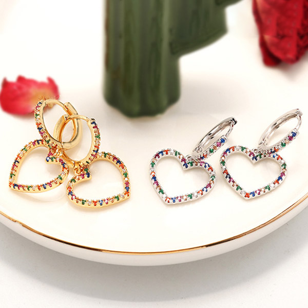 Fashion Colorful Rhinestone Inlaid Heart Shaped Earrings