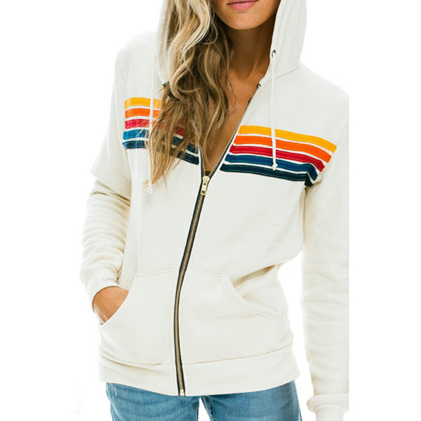 Fashion Colorful Striped Spliced Long Sleeve Hooded Sweatshirt