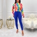 Fashion Colorful Two-piece Set Consist of Colorful Stripe Printed Shirt and Slim-fit Pants