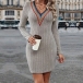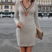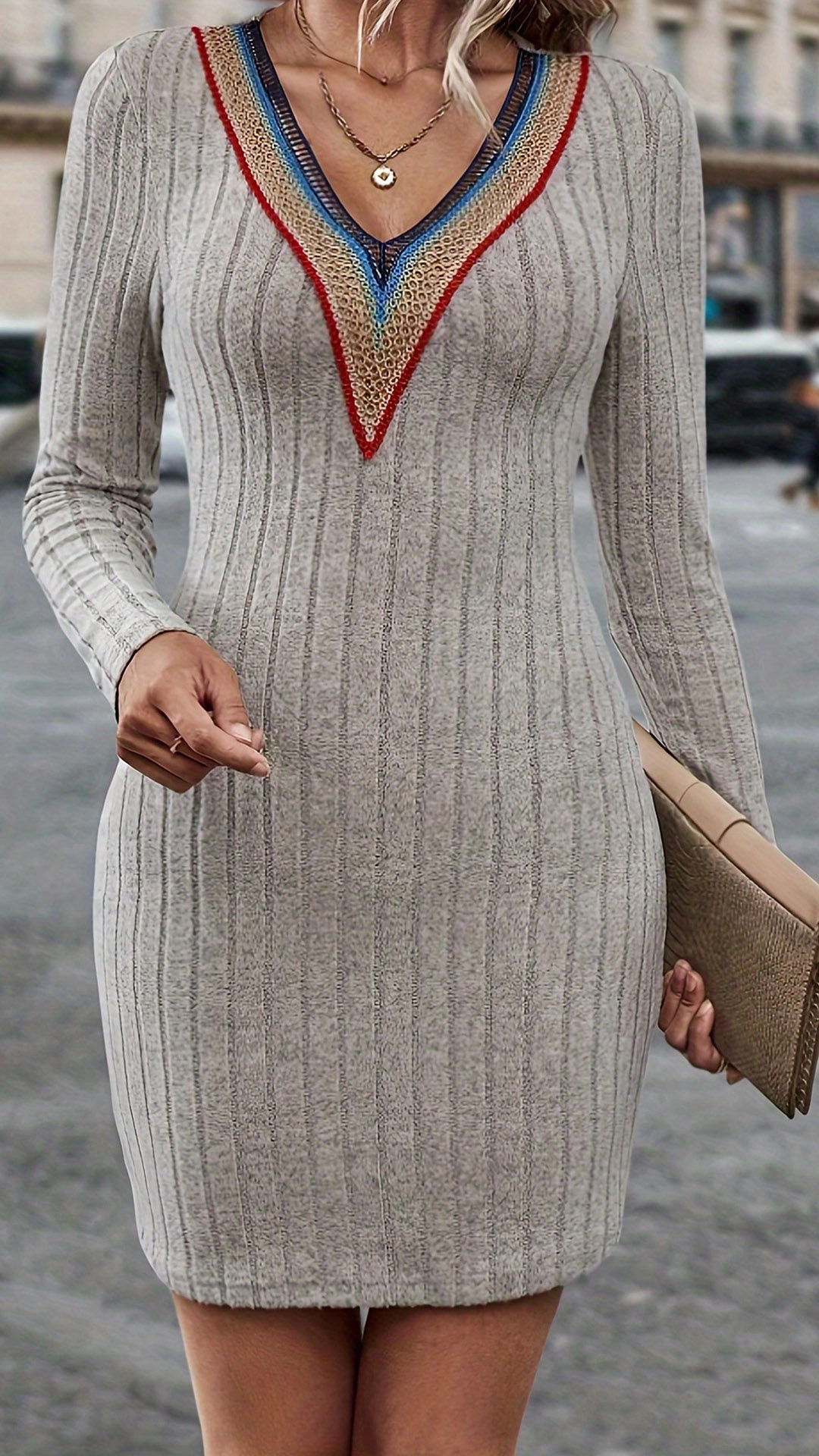 Fashion Colorful V-neck Long Sleeve Bodycon Ribbed Dress