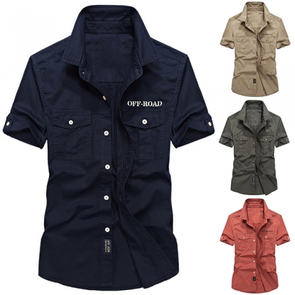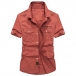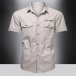 Fashion Comfy Stand Collar Short Sleeve Chest Pockets Blouse for Men