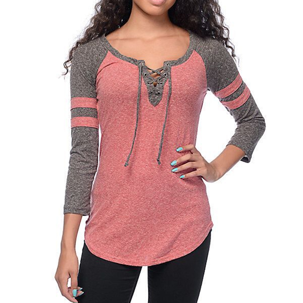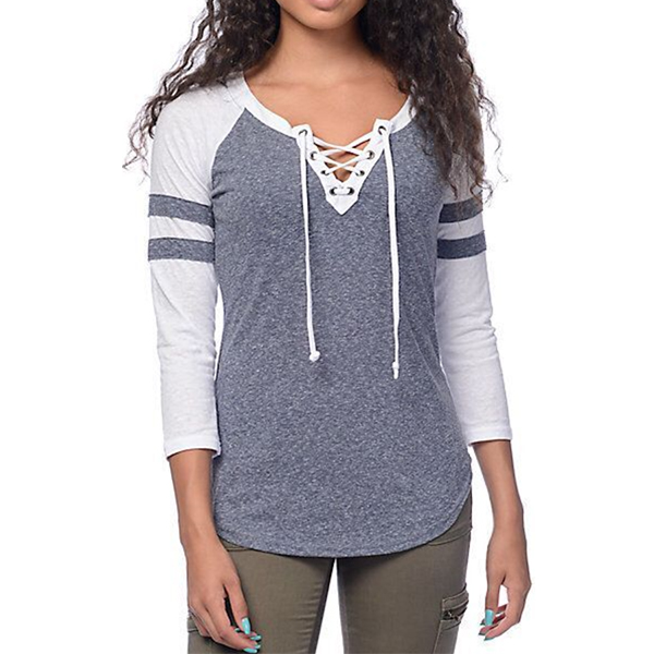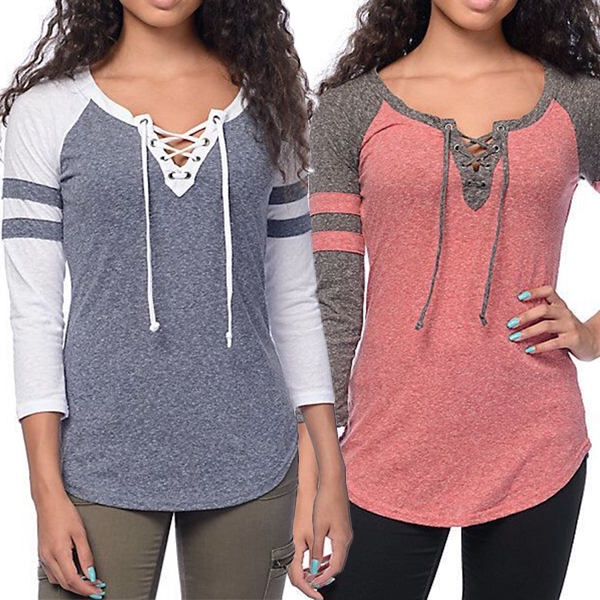 breathable fabric can keep you comfy all day,while the 3/4 sleeve and lace-up v-neck design lend you some