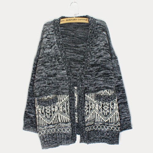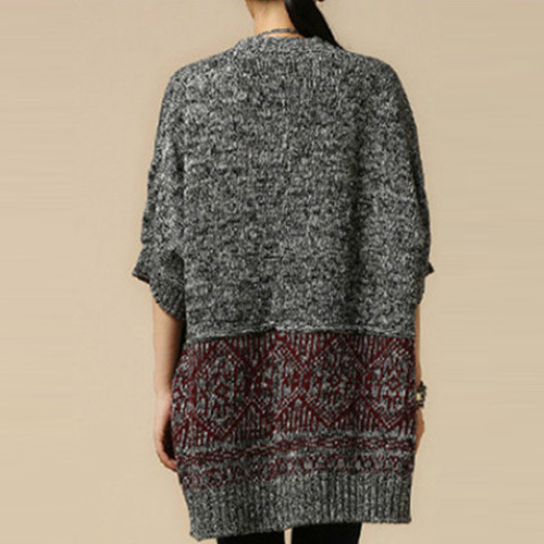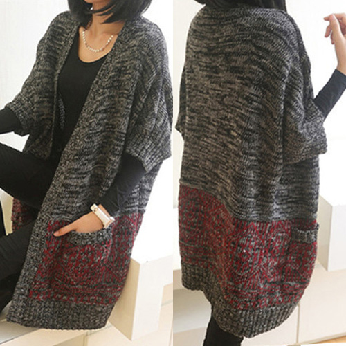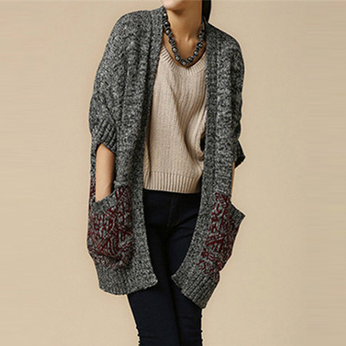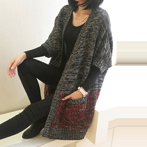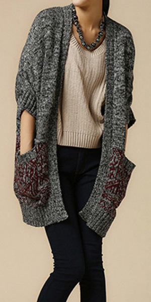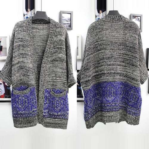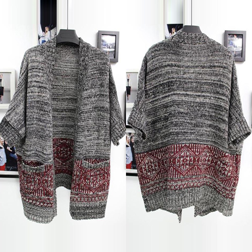 Fashion Contrast Color 3/4 Sleeve Open-front Knitted Cardigan