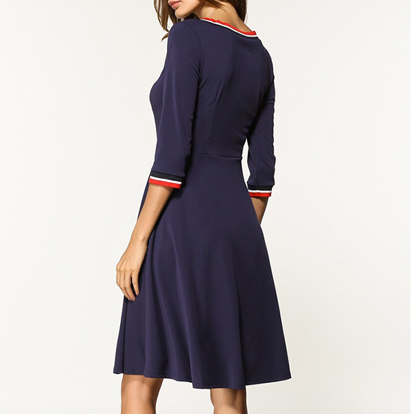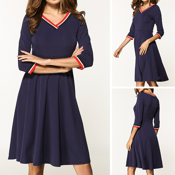 If yo have this dress on hand,you don't need to worry about any occasion. Contrast color style,accompanied with 3/4 sleeve,