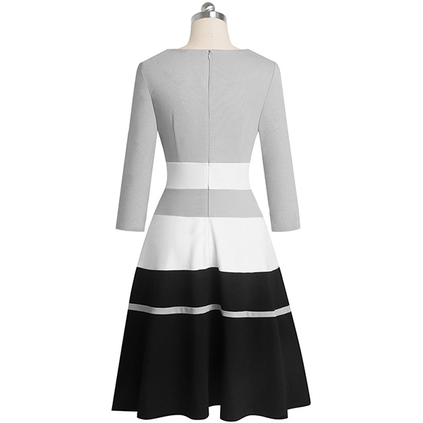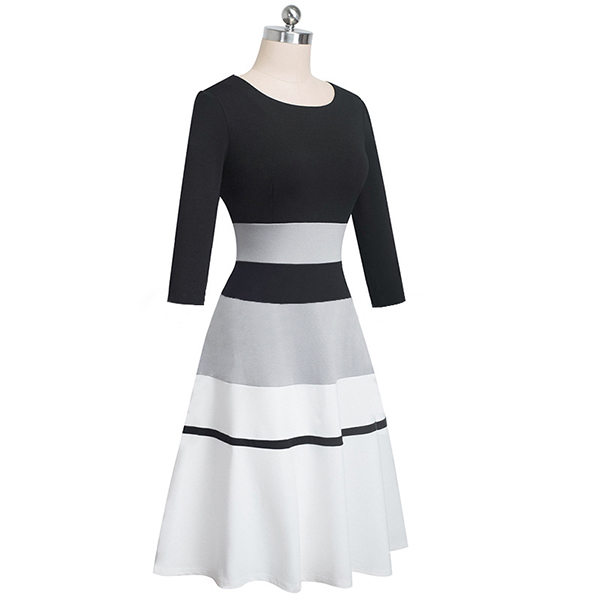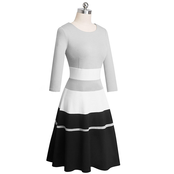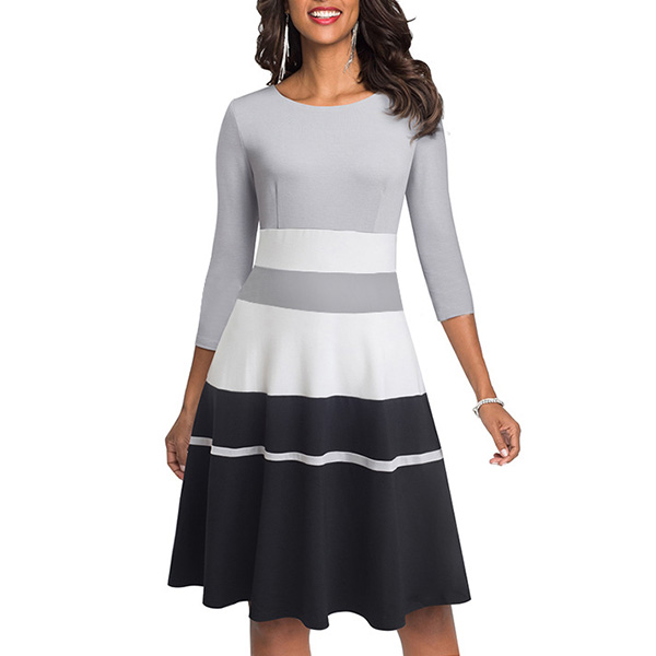 Fashion Contrast Color 3/4 Sleeve Round Neck A-line Dress
