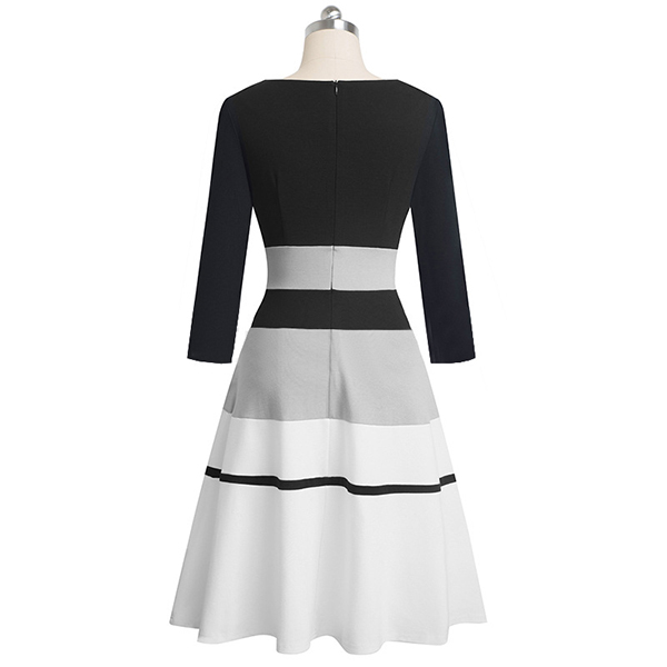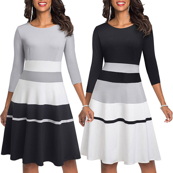 Hey,girls,you need a dress which can take you to different occasions. So how about this piece? This A-line dress features contrast color element,which makes it look more stylish and attractive. Finished with 3/4 sleeve,round neck and a-line silhouette,this dress knows how to make you look beautiful and elegant.