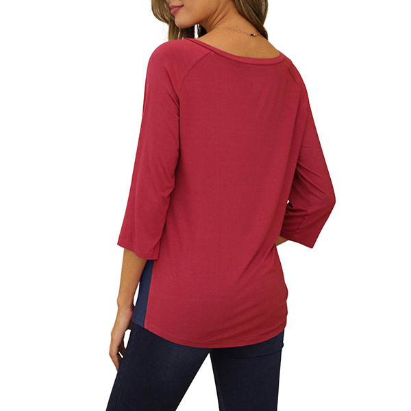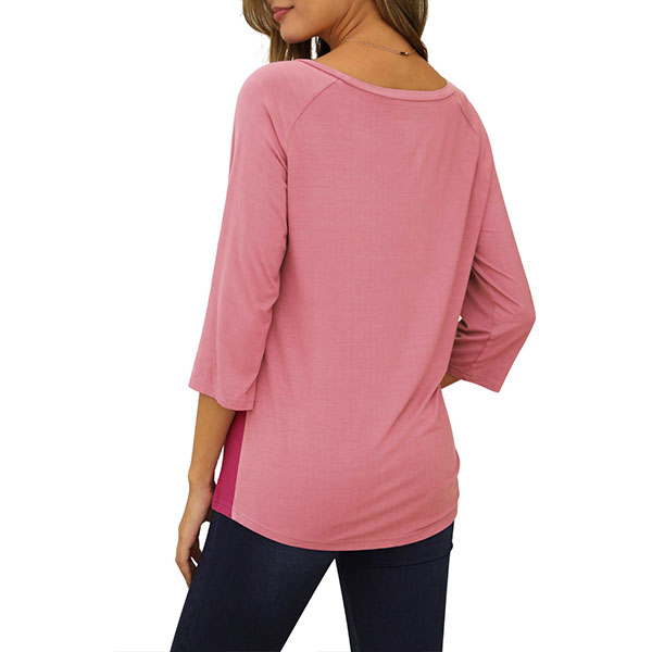 Crafted from soft and breathable fabric,with 3/4 sleeve,round neck and a loose silhouette,this t-shirt can ensure you a comfortable day. In addition,the contrast color design can add some extra charm. You can just matching with your jeans to finish a simple,laid-back but fashionable daily look.