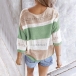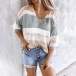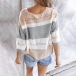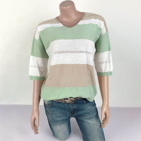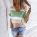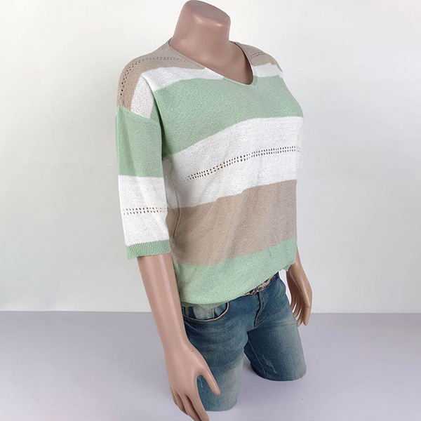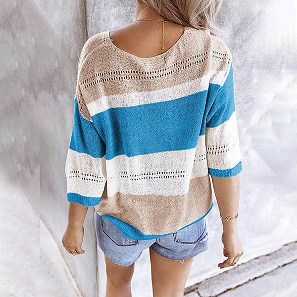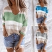 Fashion Contrast Color 3/4 Sleeve V-neck Knit Top