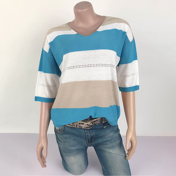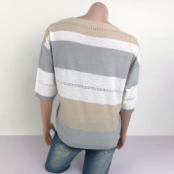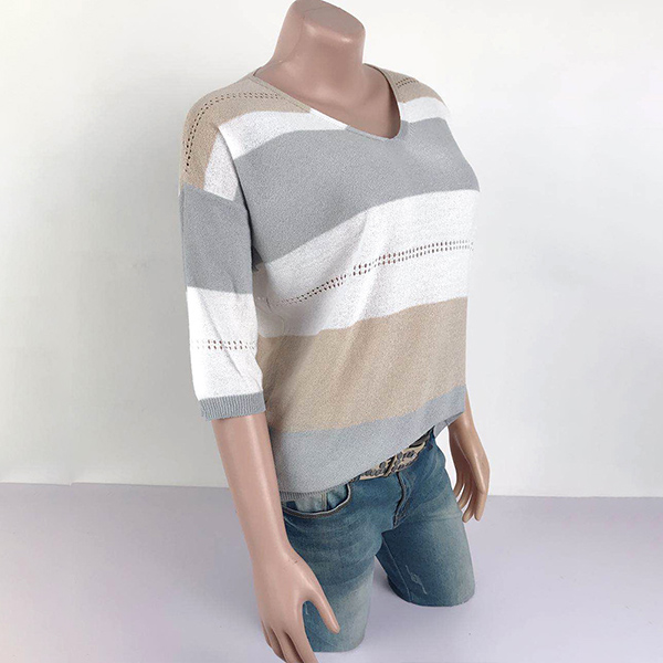 Contrast color design makes this piece look not so simple and dull. Finished with 3/4 sleeve and v-neck design,this knit top not only can give you a comfortable day,but also can exude your style and personality. Like it? Then have a try it to update your style.